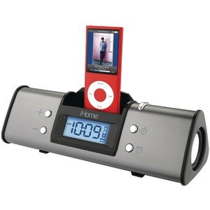 IHOME IH16G IPOD PORTABLE ALARM CLOCK SPEAKER SYSTEM (GUN METAL). COMPATIBLE WITH IPOD NANO 1G/2G/3G/4G, IPOD TOUCH 1G/2G, IPOD CLASSIC, IPOD 4G/5G, & IPOD MINI, PLAYS & CHARGES DOCKING IPOD, WAKE & SLEEP TO IPOD, LINE-IN JACK WORKS WITH IPOD MODELS & OTHER MP3 PLAYERS, 2 DYNAMIC STEREO SPEAKERS, PORTABLE SPEAKER SYSTEM WITH DURABLE, ALUMINUM CONSTRUCTION, INCLUDES AC ADAPTER, GUN METAL